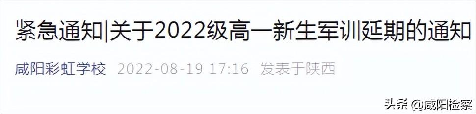 由于近期疫情防控形势再次严峻,根据上级主管部门要求,我校原定于8月20日开始的2022级高一新生军训工作推迟进行,学生届时不到校,具体时间另行通知。请全体2022级新生安排好居家学习并做好疫情防控工作。