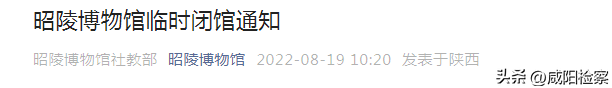 因昭陵博物馆内部线路维修改造,自2022年8月20日起,昭陵博物馆临时闭馆,恢复时间另行通知。
