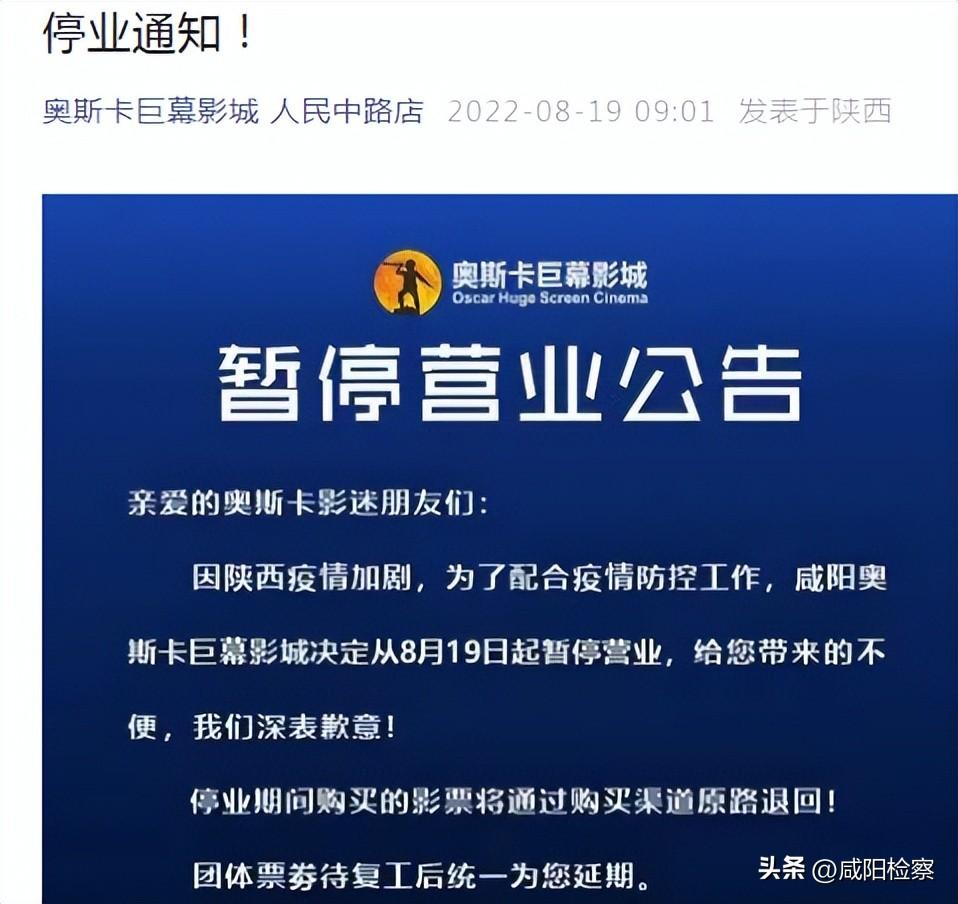 由于疫情防控需要,为配合政府严控疫情,应上级部门要求,首映国际影城(咸阳财富中心店)将于2022年8月19日起暂停营业,恢复营业时间根据疫情情况及政府相关通知为准。