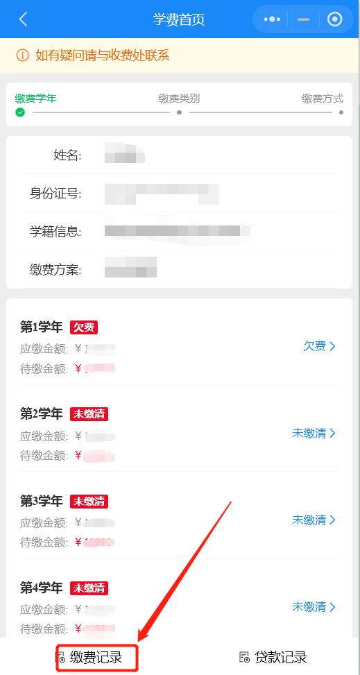 1、核实缴费信息是否正确,确认缴费学年,如果有误及时联系学校