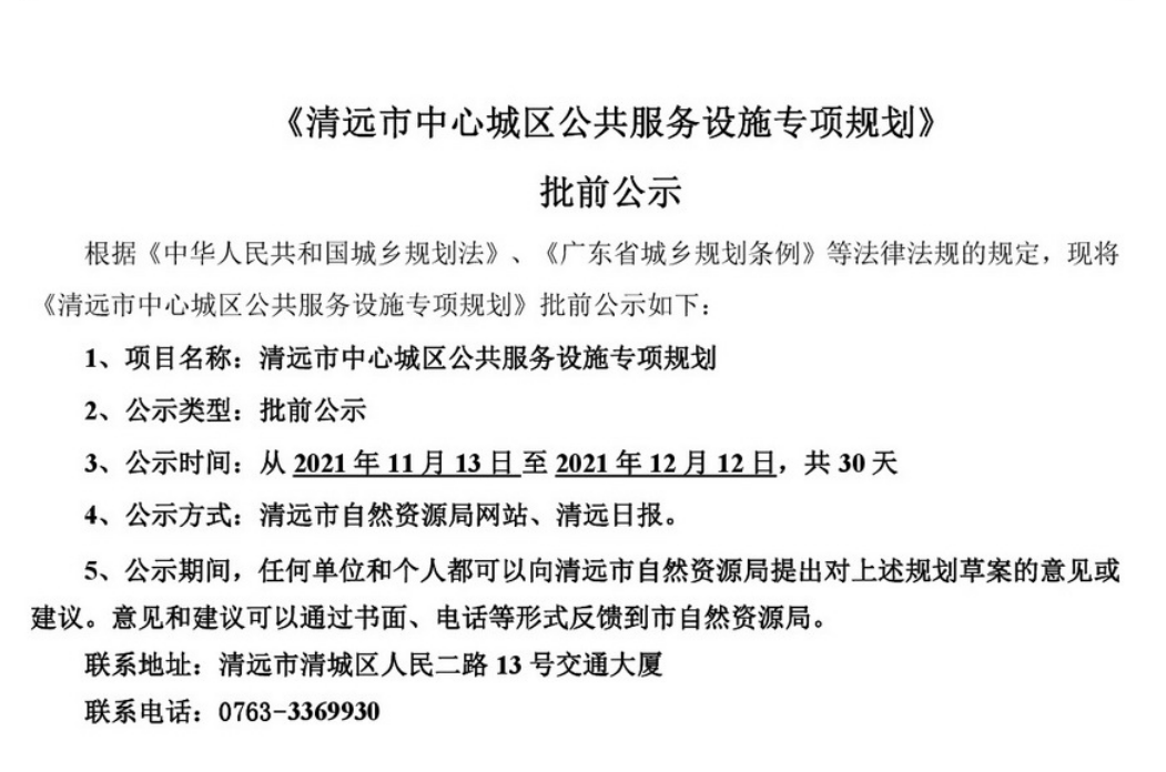 以上就是日前《清远市中心城区公共服务设施专项规划》批前公示的全部内容,规划涵盖未来清远市7大公共服务设施的资源配置。