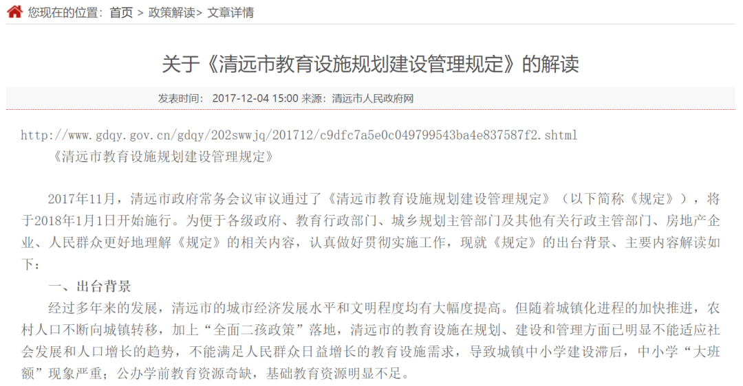 早在2017年,清远市就通过了《清远市教育设施规划建设管理规定》,明确了新建住宅小区配套建设教育设施要与新建居民区同步,但实施起来还是磕磕绊绊,很多住宅项目并没有能很好的履行这一规定。