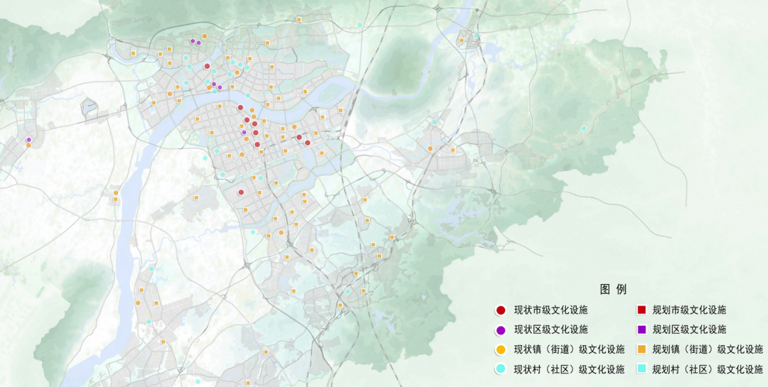 现状市级文化设施11处,区级文化设施15处,居住区级文化设施25处。