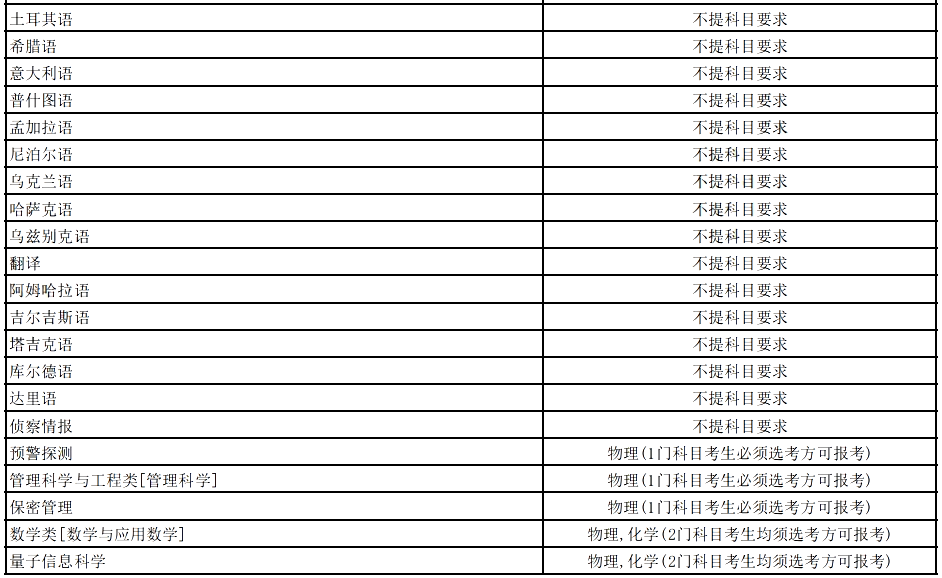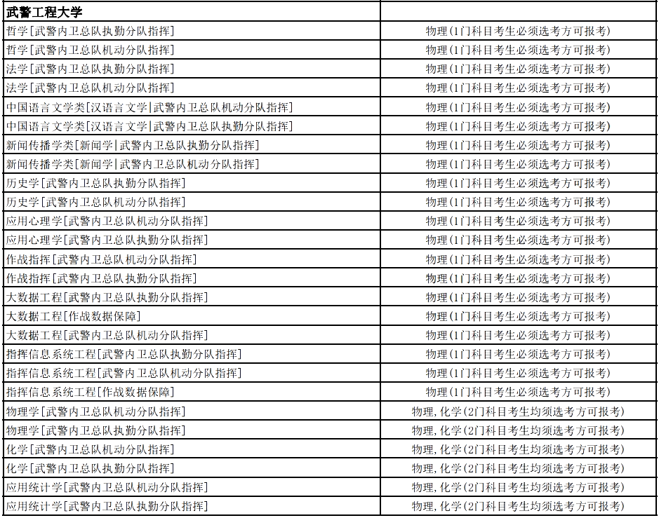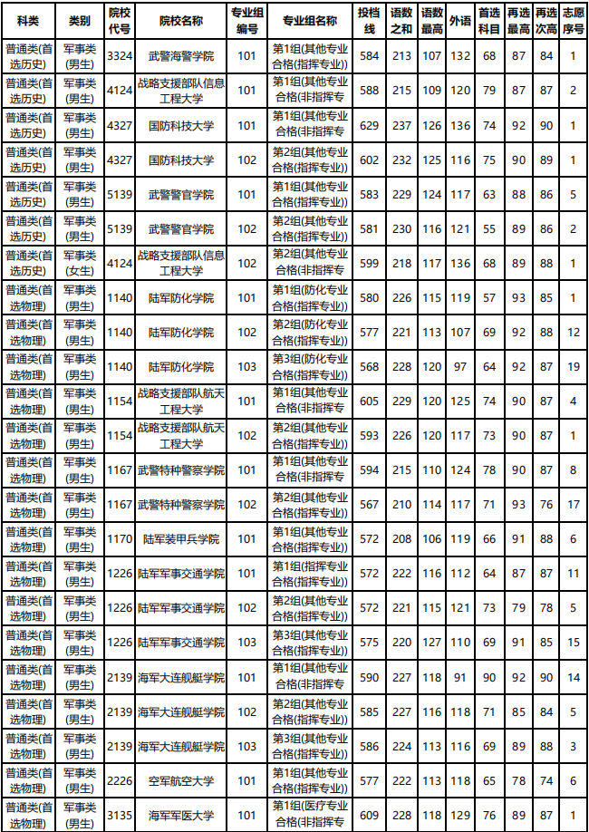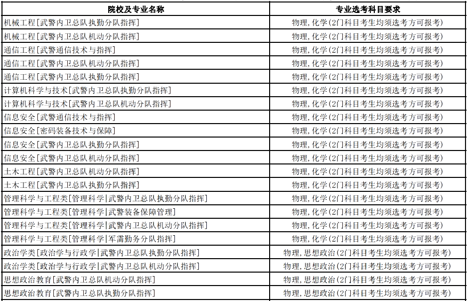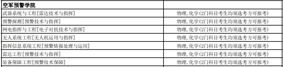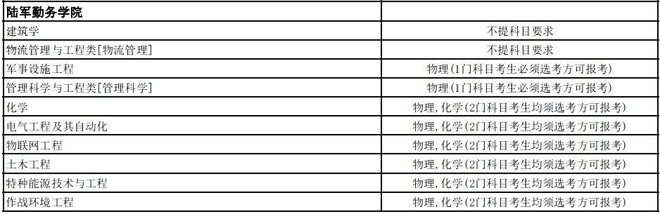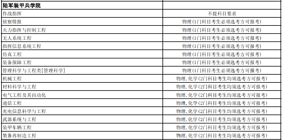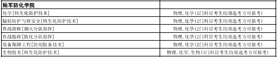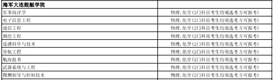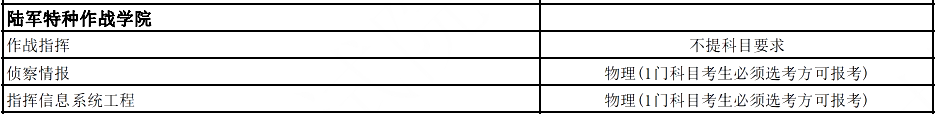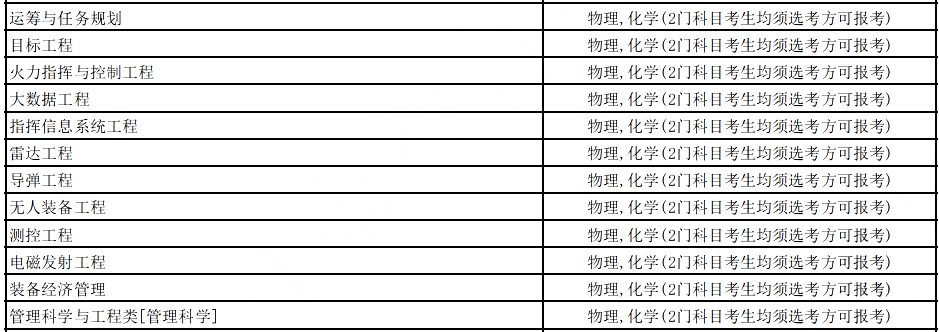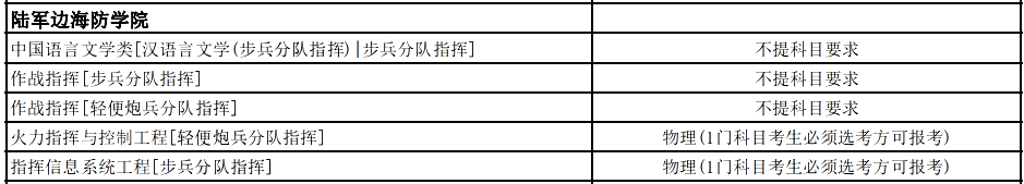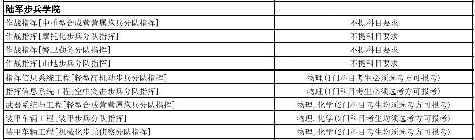 在这里以甘肃省教育考试院给出的2024年选科要求举例。在不同省份军事类院校招生的专业不全部一致,且选科要求也有区别。大家一定要具体参考最新的普通高校招生专业选考科目要求。