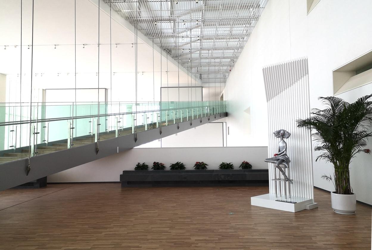 主体建筑分地上五层和地下一层,最大展厅面积2000平方米,最高展厅净空达8米。展厅内配备中央空调系统、恒温恒湿系统、现代化灯光照明系统、智慧美术馆系统、24小时警报安全系统等先进设施。