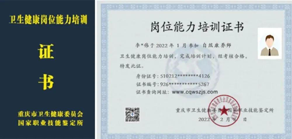 参加健康服务业岗位能力培训项目的学员,学习完相关课程后,参加该课程考试,考试合格者,颁发由重庆市卫生健康委员会国家职业技能鉴定所盖章的岗位能力证书。该证书全国通用,代表学员具备了一定专业的知识和技能,可做为用人单位岗位聘用、任职、加薪和职务晋升的参考依据。