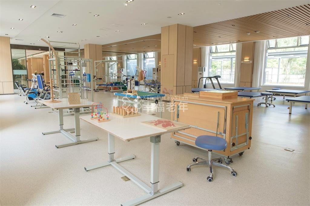在一楼的康复理疗区,有功能牵引网架、康复床、医用跑台、天轨步行训练等先进医疗康复器械,更好地配合入院老人做康复治疗。