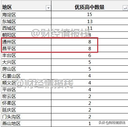 财经情报栈根据2020年的最新信息,对北京各区优质高中数量整理如下: