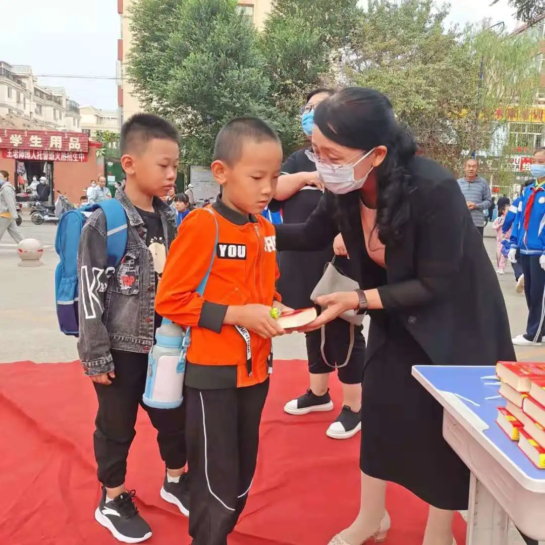迎接一年级新生入学,校长为新生赠送了字典、棒棒糖,寓意只有承受了读书的苦才能感受到生活的甜