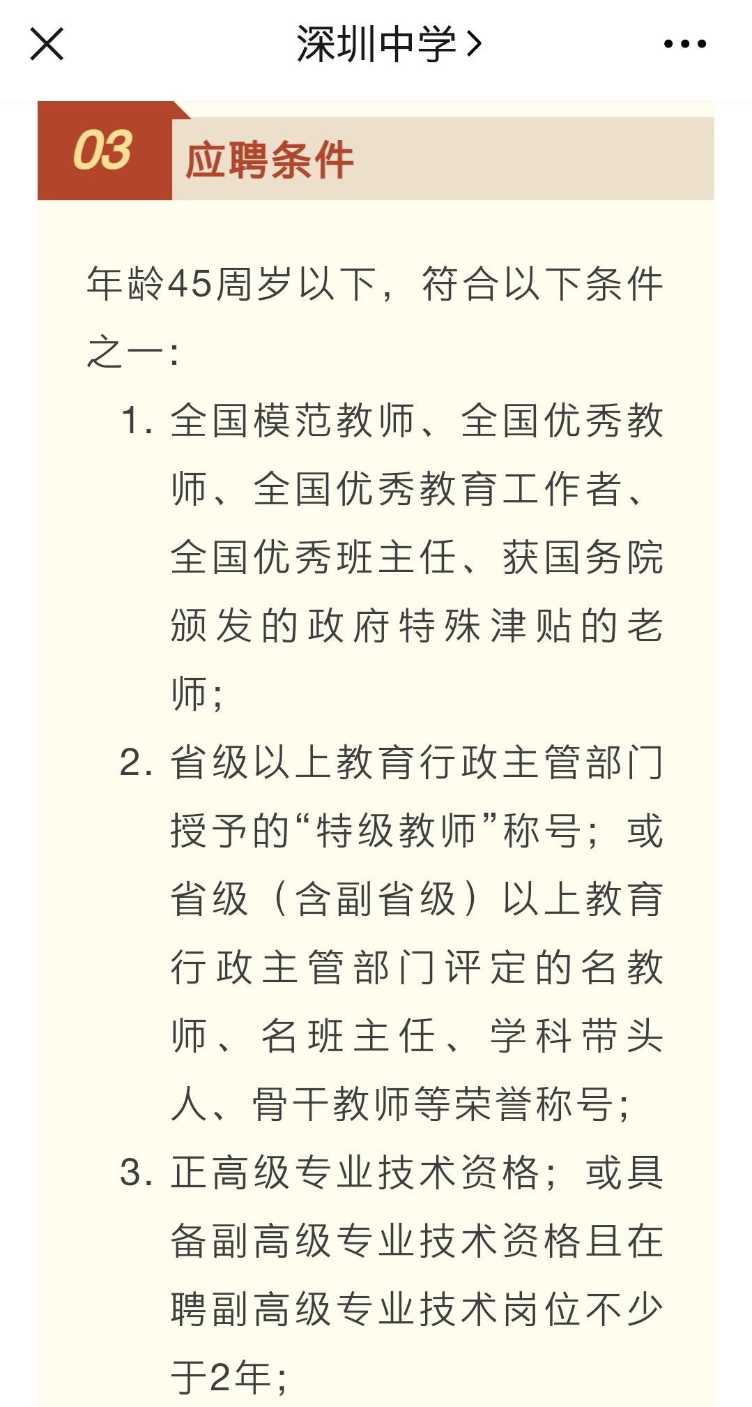 2020年2月份,深圳中学发布一则教师招聘通知,来看看有哪些条件: