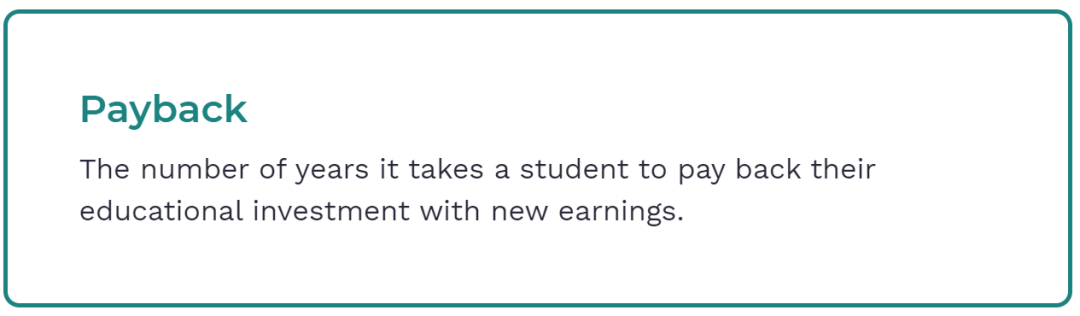首先,是衡量学生在就读某所学校后,需要多久时间才能赚回他们的教育投资(Payback)。
