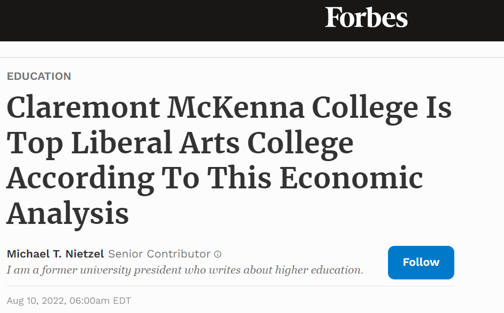 克莱蒙麦肯纳学院(图片来源:福布斯)