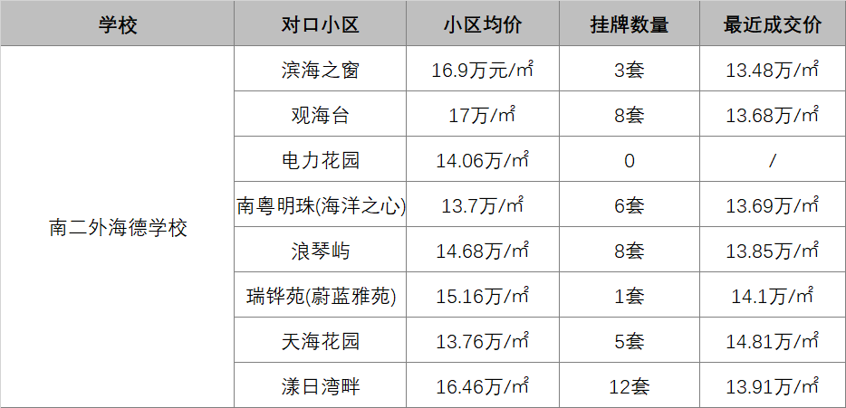 根据学位划分,海德学校初中部的对口小区:滨海之窗、观海台、电力花园、南粤明珠(海洋之心)、浪琴屿、瑞铧苑(蔚蓝雅苑)、天海花园、漾日湾畔。