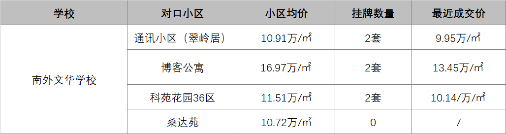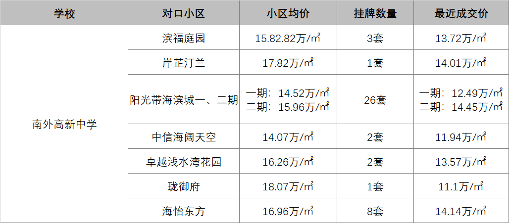 南外高新中学对口的小区比较多,表格上罗列的楼盘,同样以大户型为主。