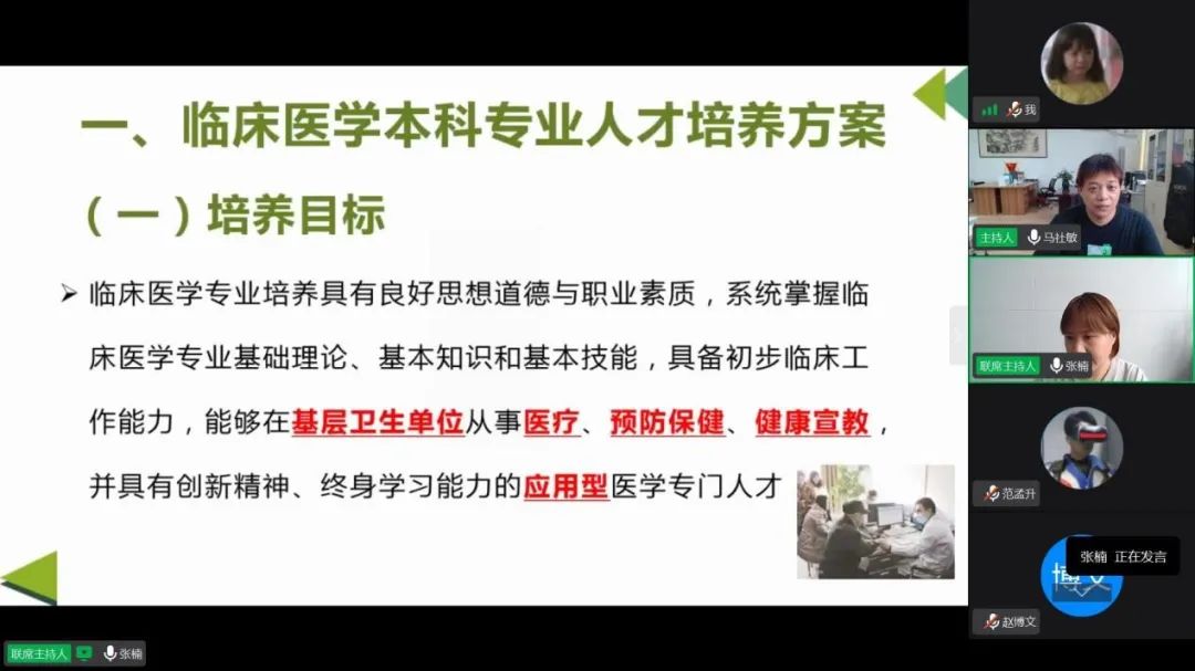 根据《临床医学专业人才培养方案》,张楠先后讲解了培养目标、核心课程、课程设置、教学模式和课程考核五个方面,从新生入学、校内学习、全过程教学到实习,从低年级、高年级到毕业,从基础课程、桥梁课程到临床课程耐心详细地给新生介绍。接着,张楠为大家分别介绍了本科和专科学生毕业后就业和升学的不同目标和实现途径,提醒新生要培养自主学习能力,制定学习计划和职业生涯规划,并付出实际行动,提升自我。最后,针对同学们在讨论群提出的问题,张楠和马社敏细致解答。