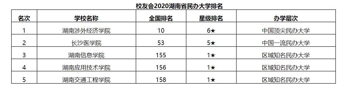 据中国校友会网(艾瑞深中国校友会网 )发布的2020中国大学排行榜中,民办大学排行榜中,湖南省共有5所民办大学进入排名!
