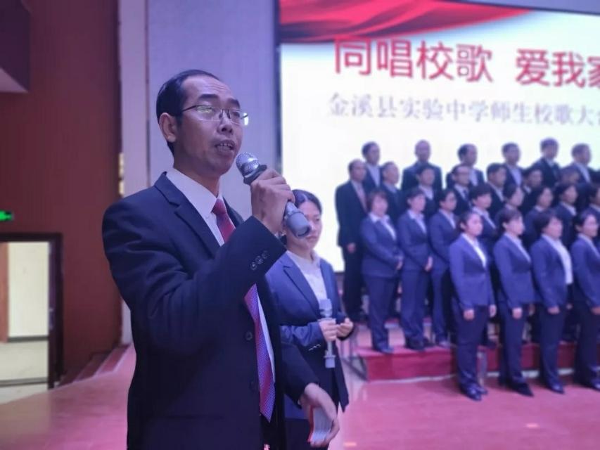 三个年级的教师合唱队也是各出心裁,各显神通。他们统一着装,以齐整的阵容亮相舞台,用饱满的热情展现风采,用真挚的情感讴歌情怀。歌声的翅膀承载的是奉献的激情,奉献的激情奏响的是嘹亮的凯歌。“求真务实,业精德高尚,仁爱包容,胸怀天地广……”全体实中人将追着教育梦,奔跑向远方。