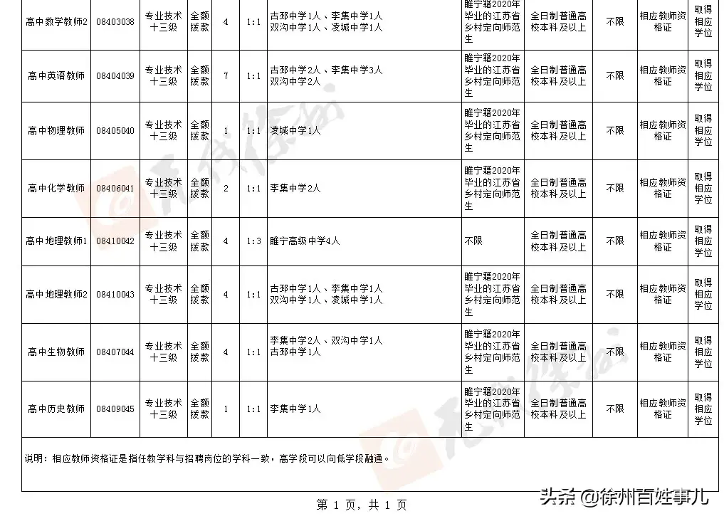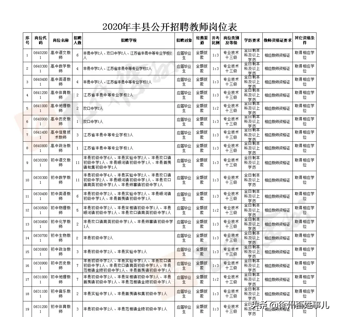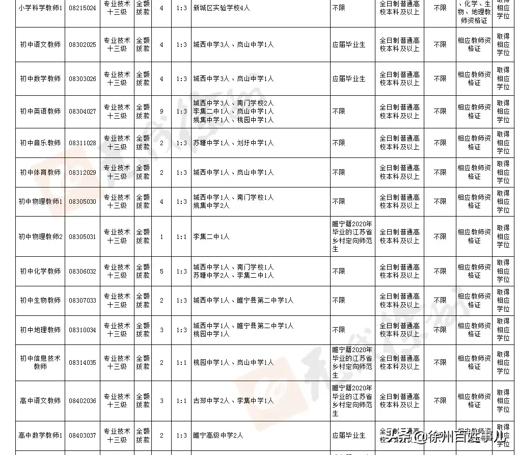 徐州市教育局直属学校2020年公开招聘教师岗位表↓