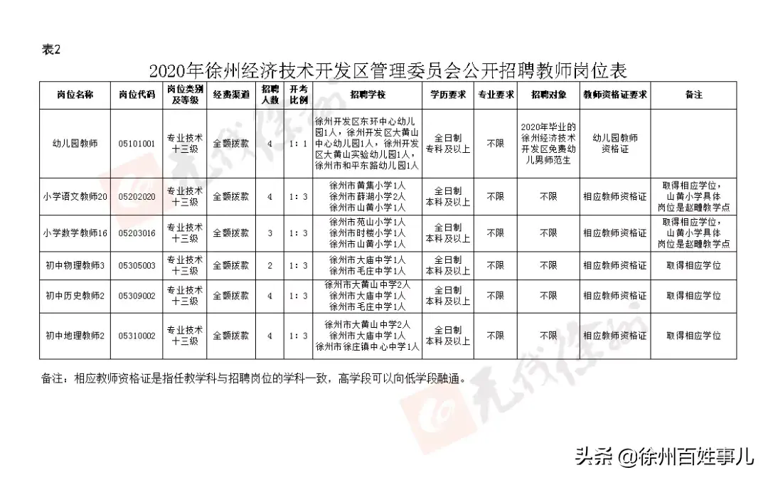 2020年徐州经济技术开发区管理委员会公开招聘教师岗位表↓