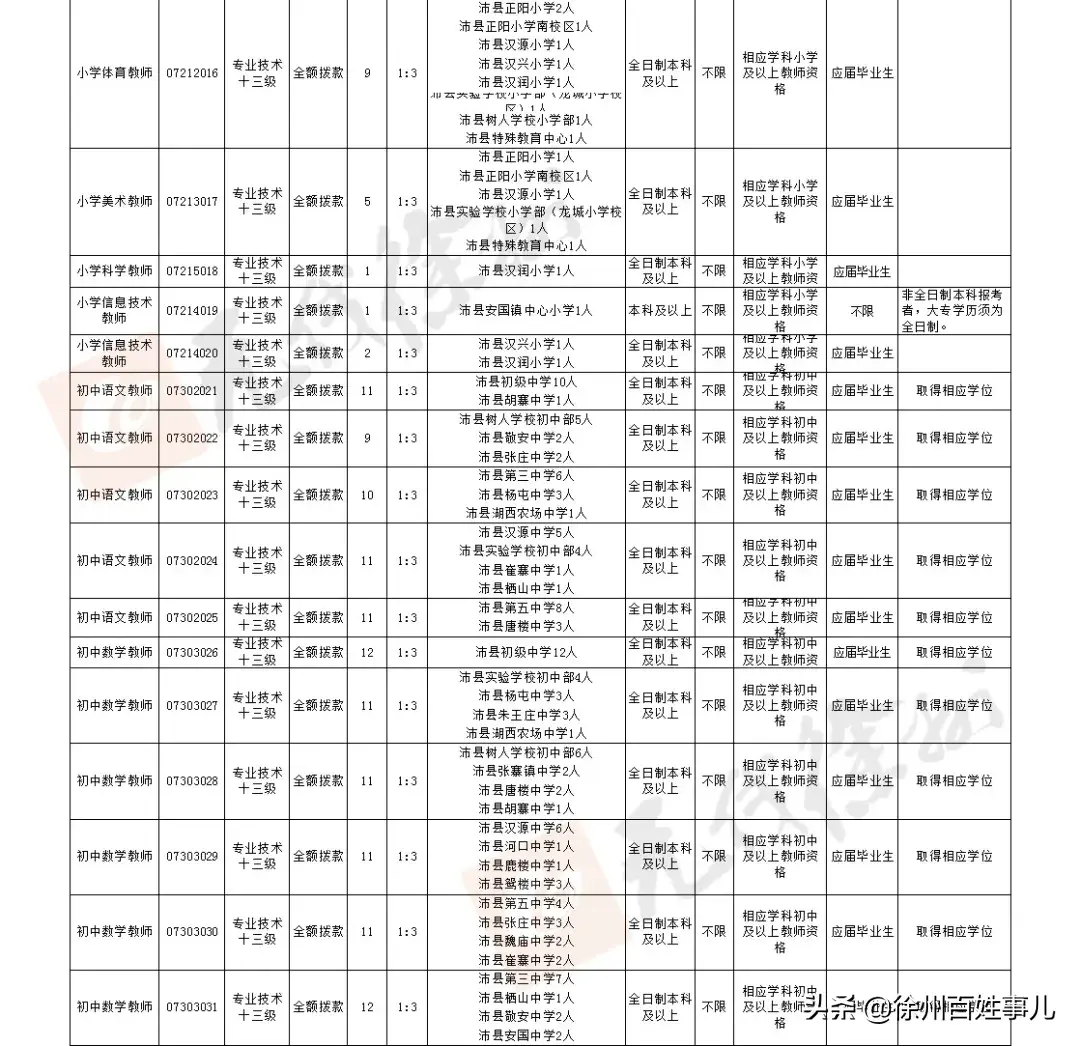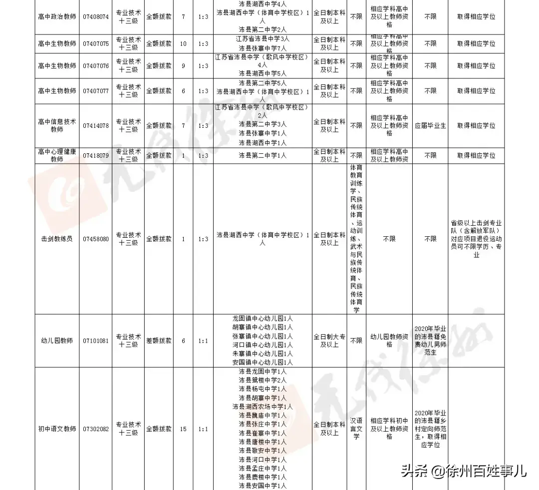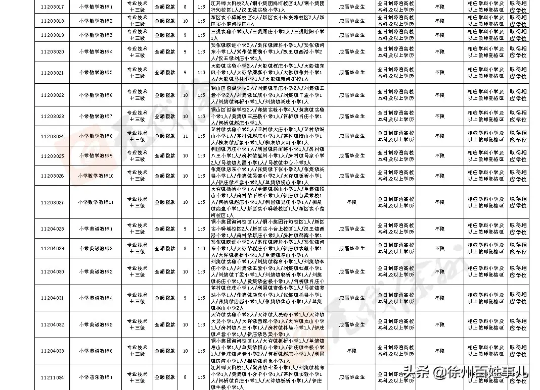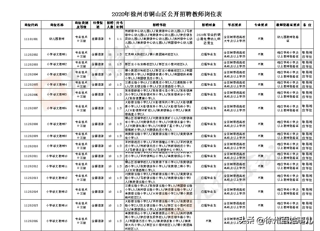 2020年徐州市铜山区公开招聘教师岗位表↓