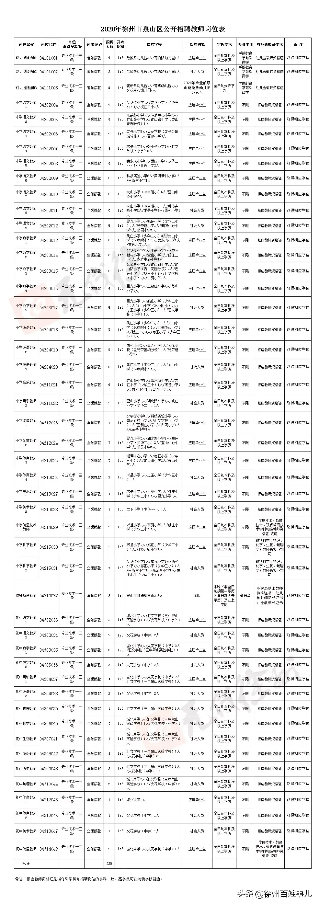 2020年徐州市泉山区公开招聘教师岗位表↓