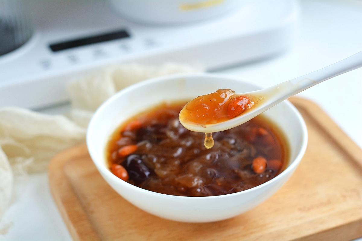 这道养颜羹富含胶原蛋白,入口滑溜溜,吃着有趣,补水效果也不错。加几颗红枣、枸杞炖,养生效果也不赖。