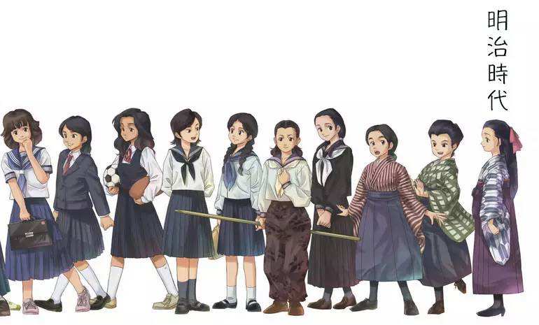 而日本的中小学女生上身是西服,下身是短裙,没有长裤,并且年龄越大裙子越短。小学女生的短裙长度会过膝,而到了中学,短裙长度则在膝盖之上。