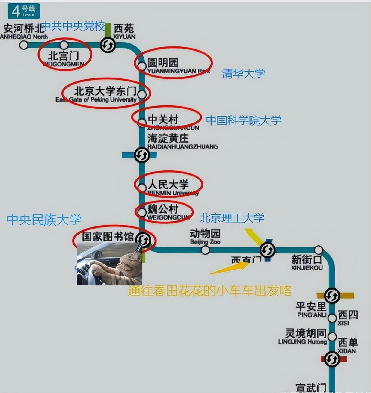 这样的心情如果放在北京名校线上,那学生们可能就下不了车了。和一般地铁线顶多四五个学校串联不同,北京名校线是真正的一站一个学校,而且都可以称得上“名校”。