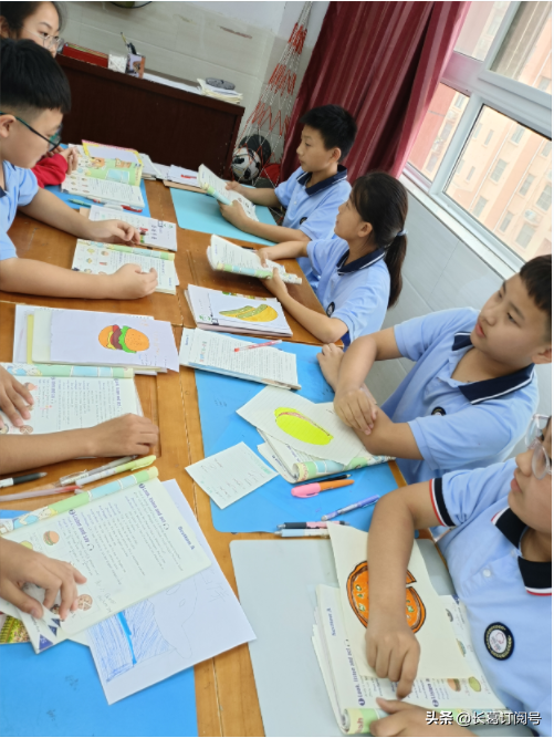 六年级张燕老师采取小组合作学习的形式,大胆放手,让学生参与对新知的探究。通过有效的合作交流和自主探索,令原本枯燥无味的单词栩栩如生。每个孩子积极踊跃地参与课堂活动,集思广益,让我们明白,鲜花虽好看,可也需要点缀,合作就是成功的秘诀!