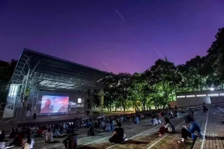 暮霭沉沉霞光乍现,华师夜晚的序章也缓缓拉开帷幕。校园佑铭体育场变成了学子放松娱乐的好去处,山民们尽情挥洒汗水,释放青春活力。体育场东边紧挨的露天电影场依山而建,闪动着无数画面的白色放映墙记录着一代代学子的美好回忆。60多年来,学校延续了放映电影这一传统,如今每周五晚这里的电影场依旧等候华师人的到来。