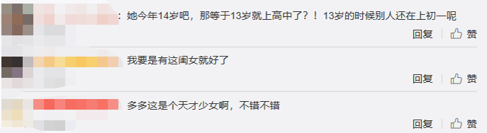 有网友看到这个片段后,表示多多今年14岁,上高中的时间往前推算就是13岁,而一个普通13岁的孩子现在应该在上初一,不得不说多多是个天才少女。