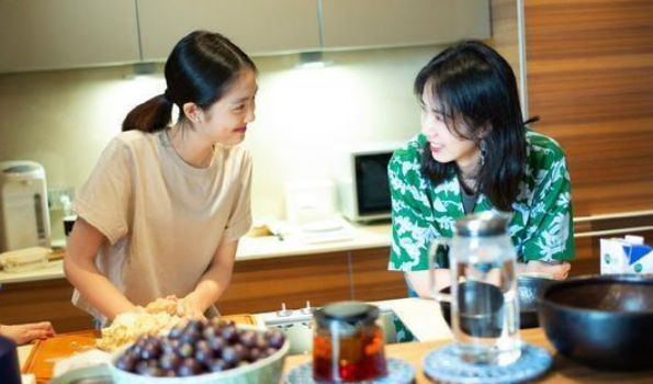 在节目中,多多穿着素色T恤,将头发扎起,十分清爽,手上揉面团的动作非常熟练,眼神专注,看上去还很贤惠的样子。