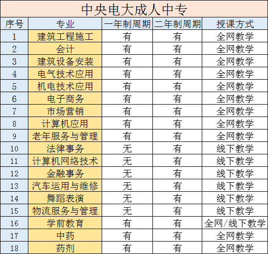 电大中专全年可报,早报名早拿证,一般分为一年制和两年制。