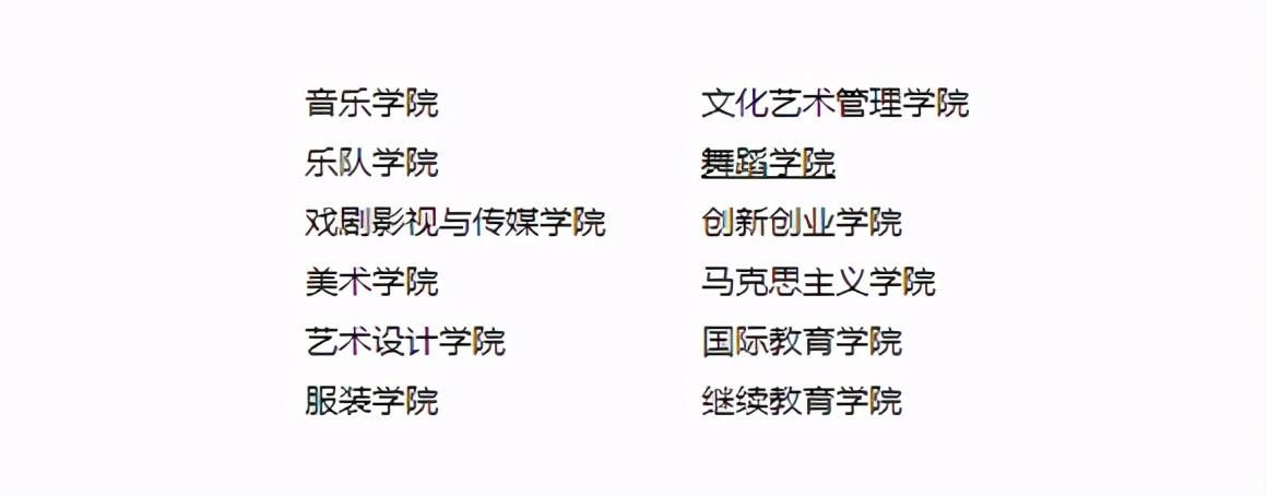 学校设有造型艺术学院、城市设计学院、传媒学院、环境艺术学院、动画学院、工业设计学院、服装学院、书法学院、雕塑学院、文创学院、国际教育学院等11个二级学院(中心),开设绘画、环境设计、动画、雕塑、书法学、服装与服饰设计、视觉传达设计、广播电视编导、产品设计、表演等78个本、专科特色专业,面向全国招生,现在校生12000余人。