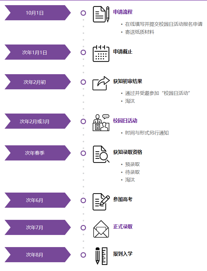 校园日活动:春节后举办,初审合格的学生将受邀参加上海纽约大学“校园日活动”,学校通过“校园日活动”主要考察学生的英语运用能力,以及求知欲、领导力、学习能力、适应能力、沟通表达能力、心理素质、团队精神等各方面素质,以及与学校的适合度和匹配度。