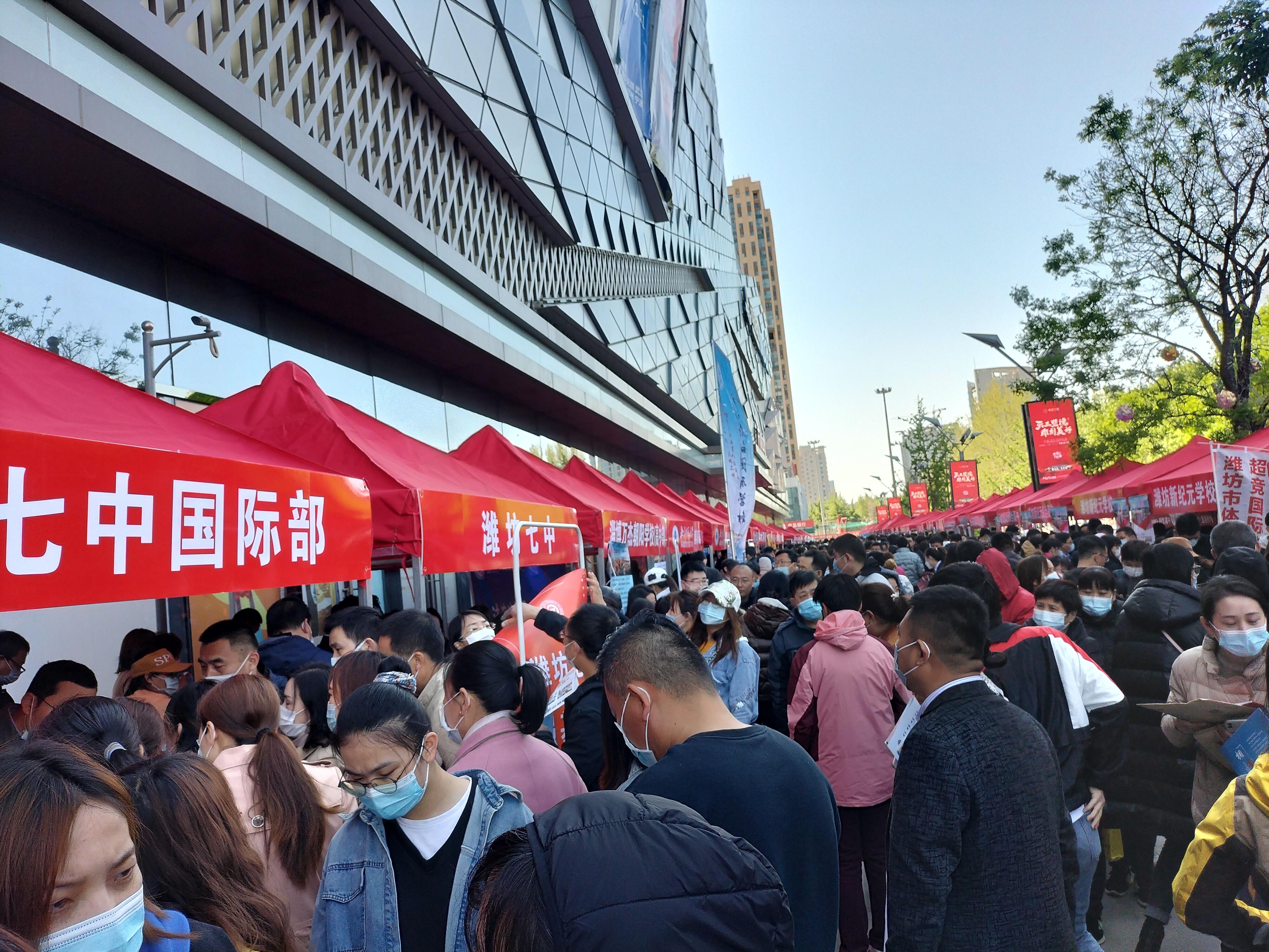 4月17日,由潍坊日报社主办、潍坊晚报承办的“2021年潍坊市中考招生咨询会“在万达广场举行。本届咨询会共吸引了九十多所普通高中、民办高中、职业院校、国际学校、培训机构参加,老师和专家们面对面与考生及家长就招生政策、志愿填报、入学就读等情况进行了交流沟通,大家收获都非常大,据悉,此次咨询会共接待学生及家长一万余人次。