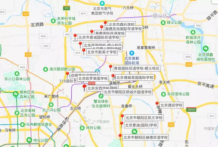 北京国际学校聚集的“上东区”北京国际学校分布图 制图:新学说