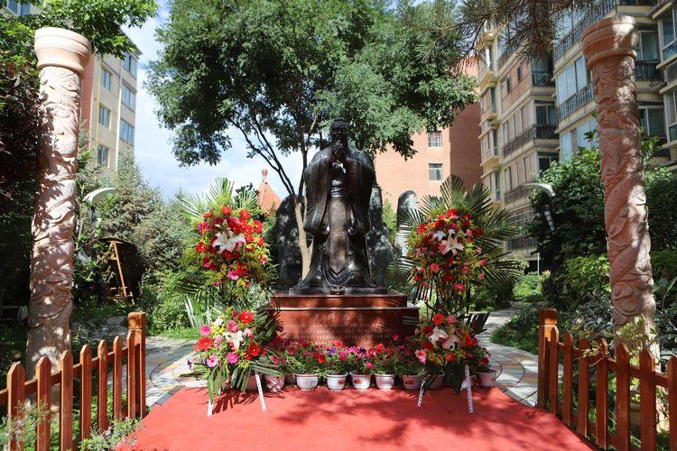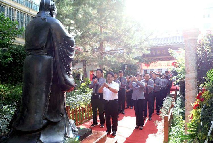 参天之树必有其根,怀山之水,必有其源。当我们回顾中华文化几千年的发展演进,总有一个身影在我们的视野中久久停驻。面对圣贤,我们要严格遵循做人明礼的正道,向善向美,彰显品格。让我们献上花篮表达油然而生的无限敬意。