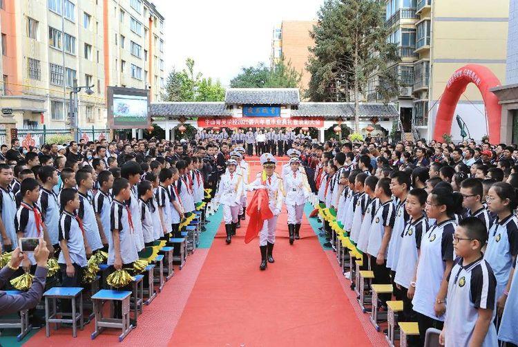典礼在雄壮的国歌声中拉开序幕,会场庄严肃穆,同学们和着乐曲,高声唱起国歌。曾经还是稚嫩懵懂的孩子,今天已经明白要为建设伟大的祖国而努力学习。
