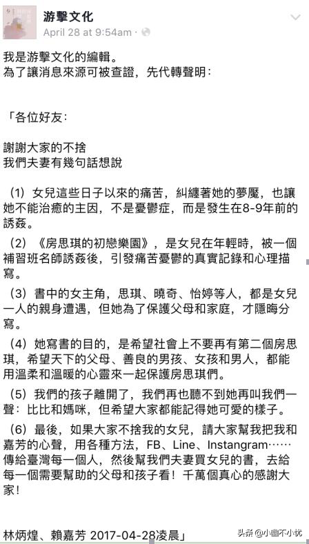小说扉页写着“改编自真人真事”,但文学作品毕竟不是纪实报道,林奕含不等于房思琪。毕竟,现实永远比小说更矛盾、更复杂、更幽深。