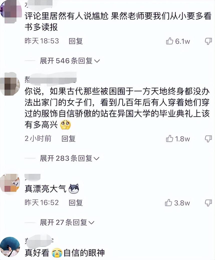 但其实在笔者看来,女留学生穿汉服属于个人喜好,也没有规定说不能够穿汉服参加毕业典礼,所以也没必要去“酸”别人,更不要对他人随意的“上纲上线”,毕竟用什么样的眼光去看待事情,那看到的事情就是什么样子的。