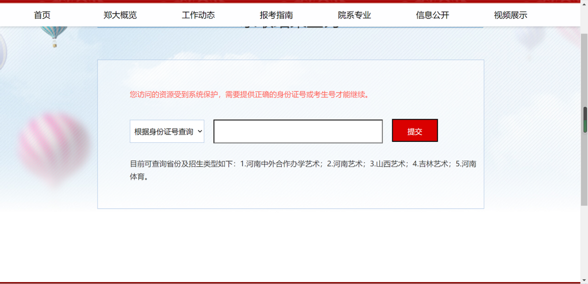 查询步骤二:网站页面的右侧有录取查询一栏,点击详情即可了解目前可查询的省份及招生类型。考生及考生家长可以通过考生身份证号及考生号进行查询。