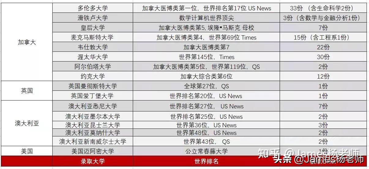 英国、澳大利亚、美国方向的录取不多,不做展开。
