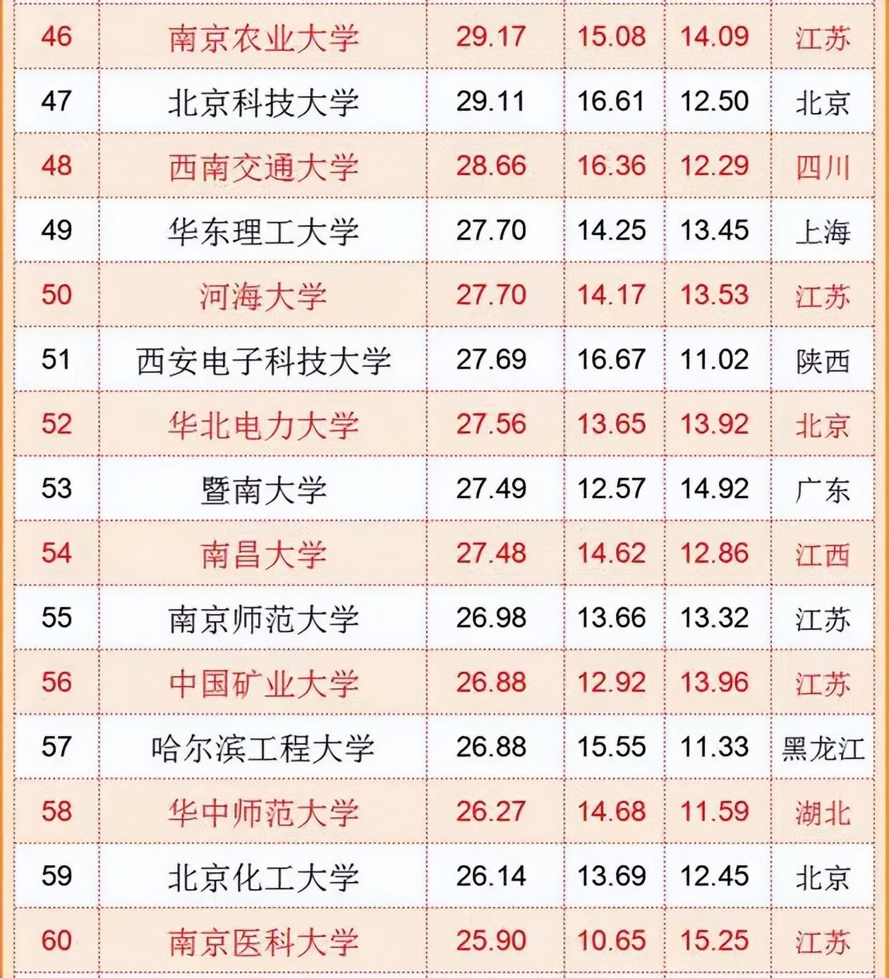 榜单中除了双一流院校外,还有一些没能进入双一流院校名单但非常出名的学校,例如燕山大学,即便被众人看好,今年的评选中还是没取得“理想的成绩”,但实力依旧不容小觑,排在88,也算是实至名归了。