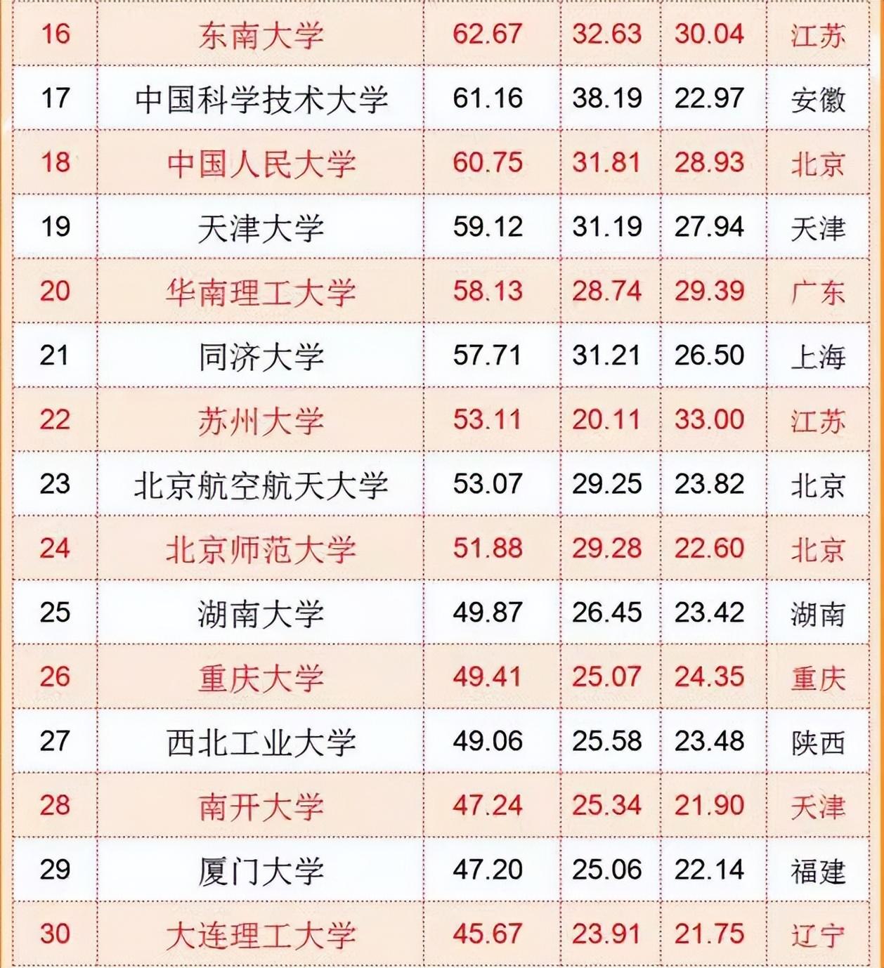 和复旦大学同样在上海享誉盛名的还有同济大学,排在了第21的位置,不得不说有实力的大学真的是越来越多了,太令人欣慰了,北京师范大学的成绩也很亮眼,算是榜单内排名第一的师范类大学,怪不得每年招生都不缺生源。