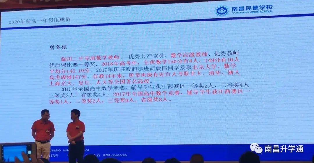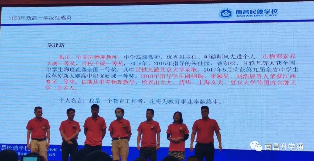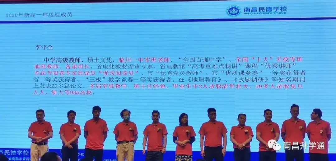 2020年民德学校新高一师资部分由邓国民副校长主讲,主要介绍了南昌民德学校的教学理念以及新高一部分师资。