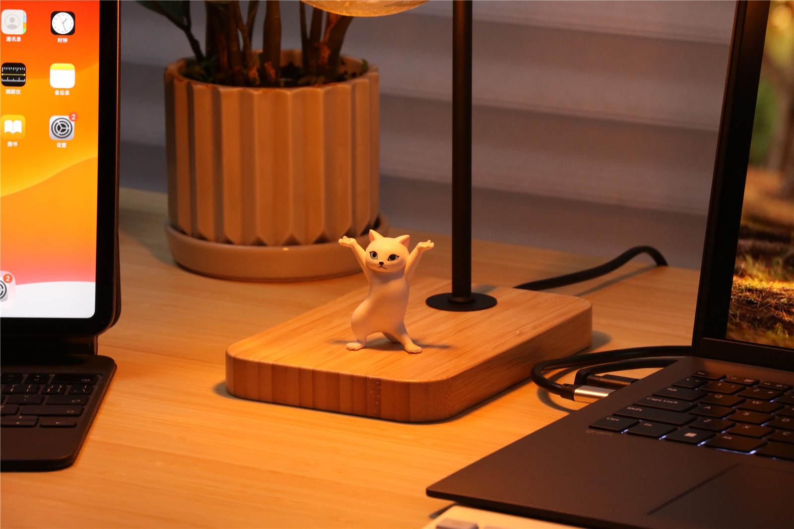我们发现桌面会马上停止下降动作,然后缓缓上升一小段距离,摆脱障碍物,并且恢复到水平稳定状态,以保护桌面上各种装备物品的安全。视频中易碎的咖啡杯和手办都稳稳当当、安然无恙,没有出现滑动、翻倒或坠落等意外。