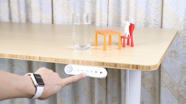 这样,我们就设定并记忆了站立、坐下的两档高度。一键升降,方便我们站坐交替使用升降桌。