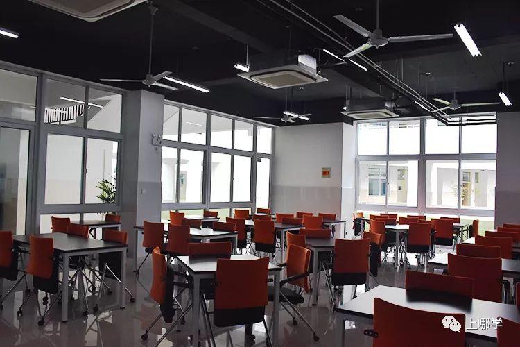 推荐理由:世外系最美校园之一!教学楼主体外墙使用红白相间的配色格外醒目,各类教室、走廊采光充足,橙色主色调显得特别高大上!