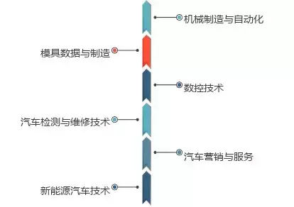 招生专业:机械制造与自动化、模具设计与制造、数控技术、汽车检测与维修技术、汽车营销与服务、新能源汽车技术